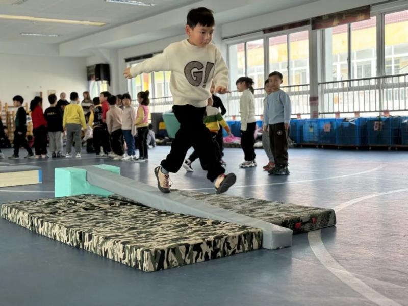 为开展丰富多彩的户外游戏和体育活动,培养幼儿参加体育活动的兴趣和习惯,增强体质,提高对环境的适应能力。 盛泽幼儿园近期开展了跑酷活动。