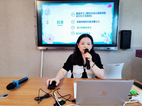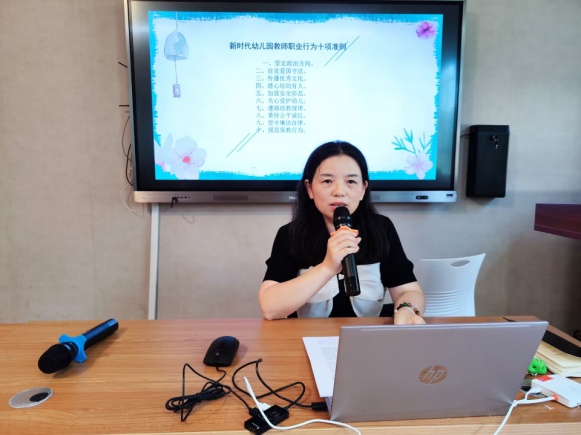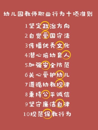 首先,为进一步增强教师的责任感、使命感、荣誉感,规范职业行为,明确是的底线,由王园长带领教师们集体重温学习《新时代幼儿园教师职业行为十项准则》。让教师明确职责任务,守住是师德底线,更深入的了解又是的职业行为准则和师德底线的内涵,引领教师成为有理想信念、有道德情操、有扎实学识、有仁爱之心的好老师。
