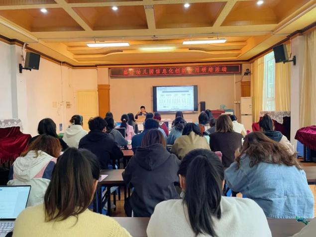 为提高教师的数字化素养,以数字化赋能幼儿全面发展,加快幼儿园数字化建设。2023年11月10日下午,盛泽幼儿园邀请了吴江区勤装办马能旺老师为全体教师解读新形势下学前教育信息化发展的探索与实践,并从教育数字化发展历程、教育数字化应用等方面开展了教师数字化素养专题培训。培训由保教副主任苏艳主持,全体教师参加了此次活动。