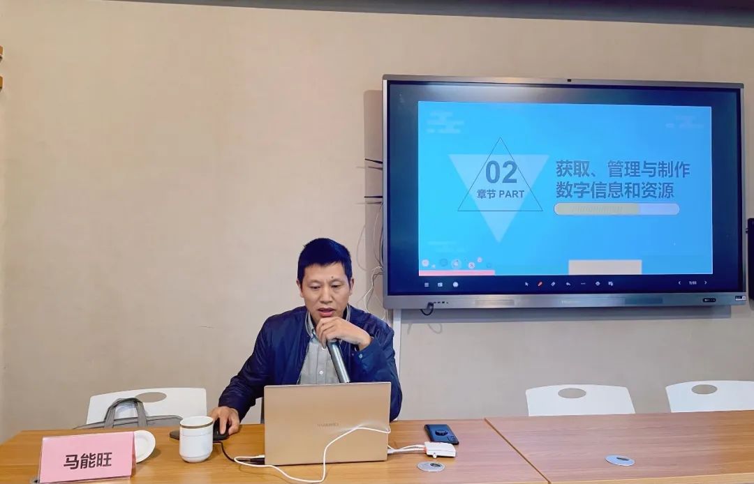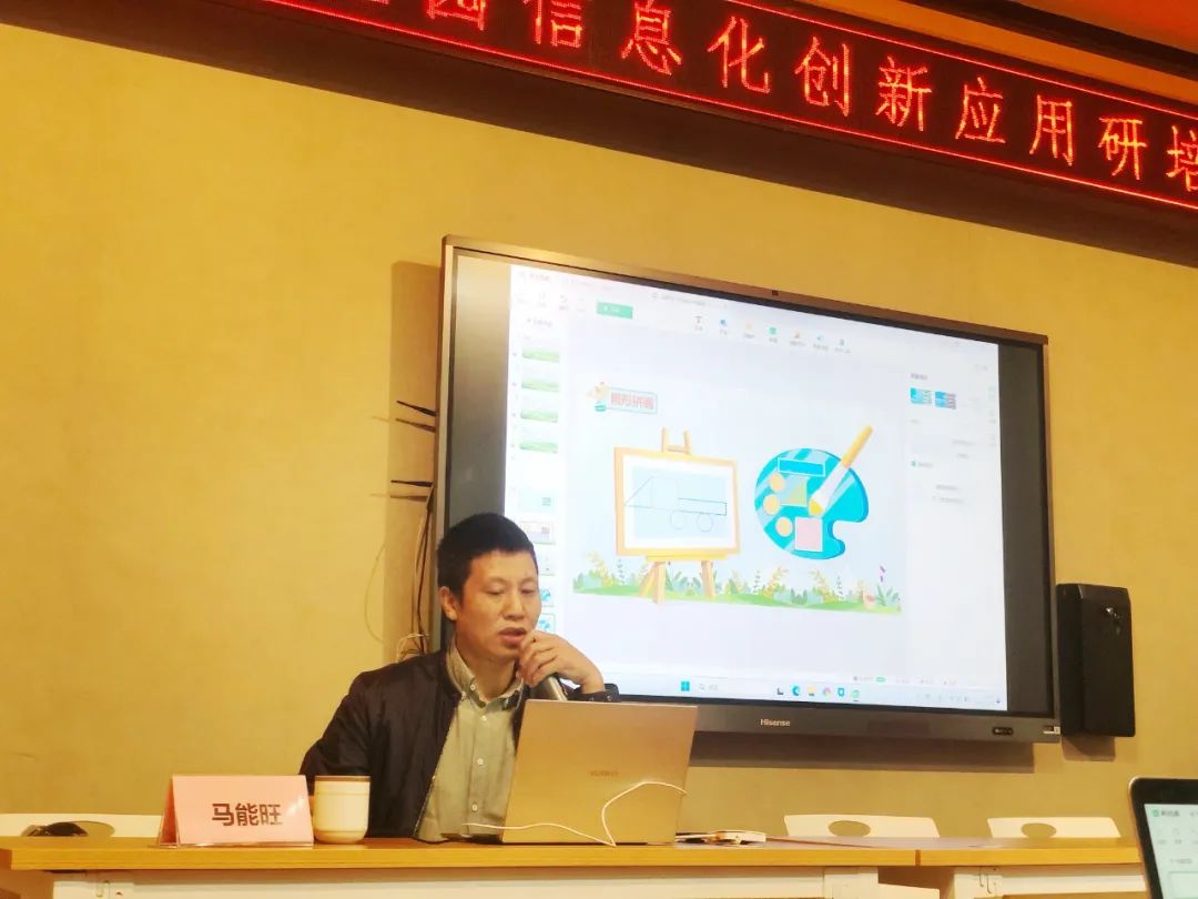 首先,马老师介绍了教师数字素养和国家颁布的标准,阐述了幼儿园教育信息化的必要性、便捷性、智慧性。教师应适当利用数字技术获取、加工、使用数字信息资源,发现、分析和解决教育教学问题,优化、赋能教育教学活动。