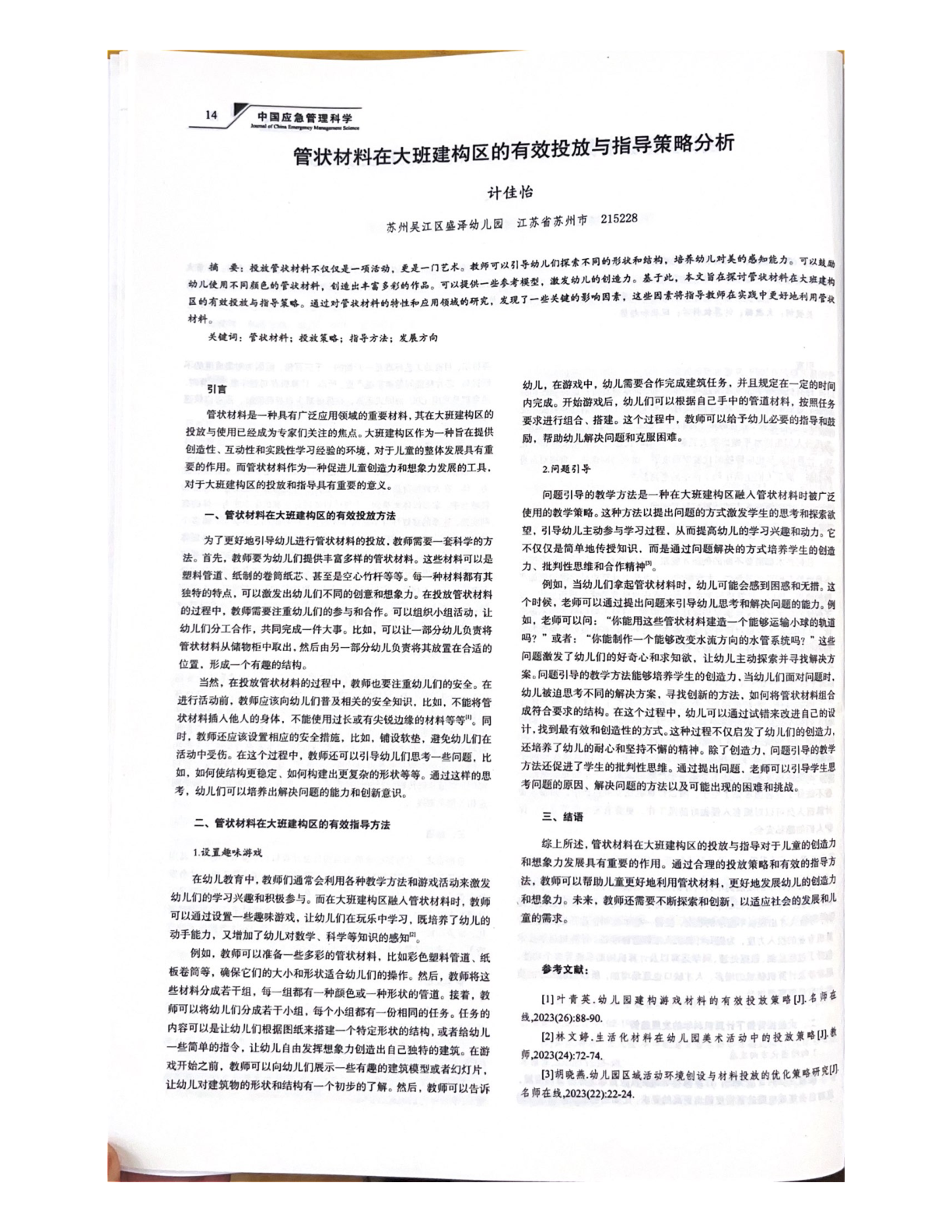 研究成果:管状材料在大班建构区的有效投放与指导策略分析