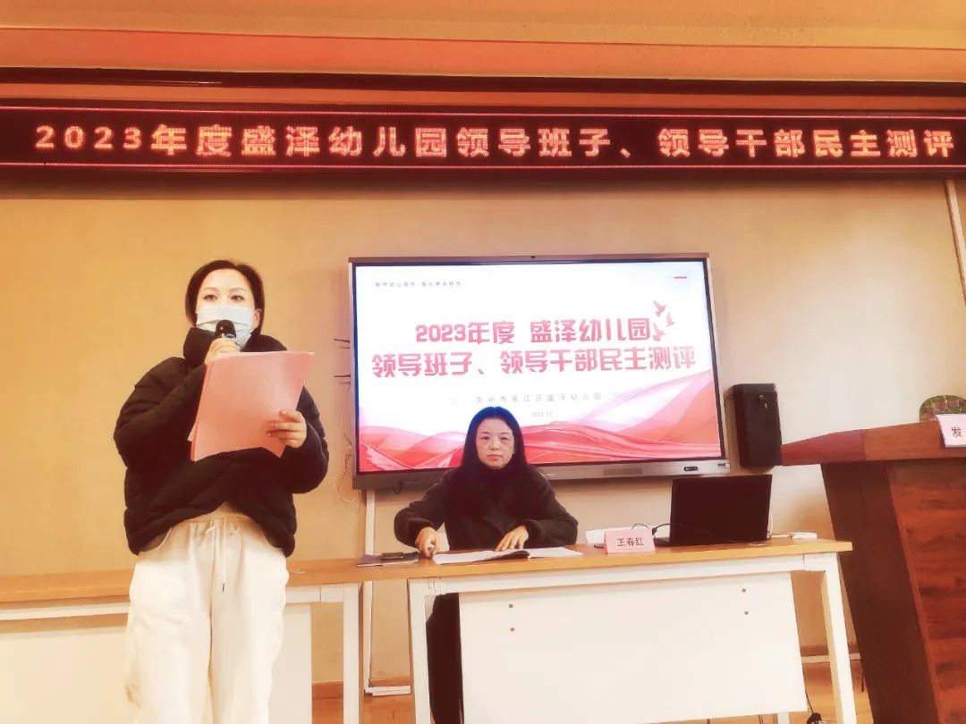 为广泛了解民意,客观、公正、科学地评价幼儿园相关情况,提升班子成员履行岗位职责的能力和管理水平,盛泽幼儿园根据上级文件精神和要求,开展了2023年度领导干部述职和民主测评活动。本次大会在责任区督学的全程参与、监督下进行。测评前,李晓燕主任对此次测评的目的、意义和作用进行了说明,要求大家秉着公平、公正、实事求是的态度进行测评。王春红园长代表盛幼领导班子和个人作了以“初心如磐 奋楫笃行”为主题的述职报告。报告从述党建、述责述廉、述意识形态工作、述学、述法等几个方面,将2023年度的学校工作向责任督学和全体盛幼教师进行了总结和汇报,并围绕工作开展情况、工作特色和亮点、存在问题以及下一步工作打算,全面细致的阐述了盛幼本年度工作的开展情况。幼儿园全体教师从思想政治、廉政建设、工作作风、工作能力、工作态度和工作实绩等五个方面对盛园领导进行了民主评议。整个评议过程在责任区督学的监督指导下完成。督学对评议结果无异议,并在民主评议汇总表上确认签字。