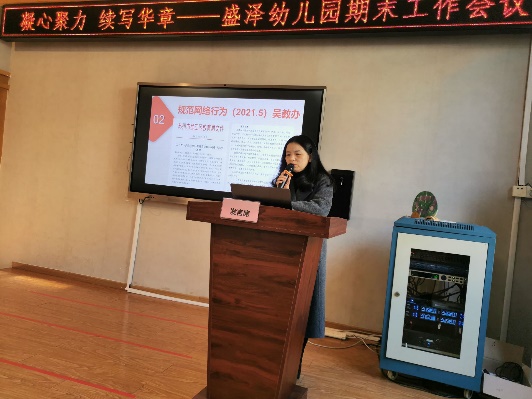 教师立校之本,师德师风则是教育之魂。为了更好提高教师的思想政治素质和的职业道德水平, 2024年1月25日,我园开展了寒假前的师德师风培训活动及本次活动由王春红园长主持,内容包括: