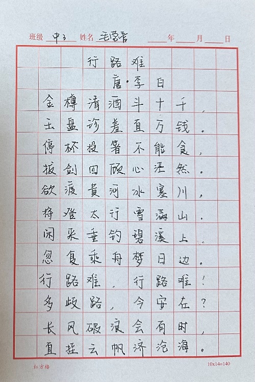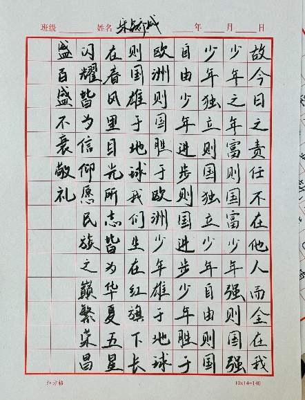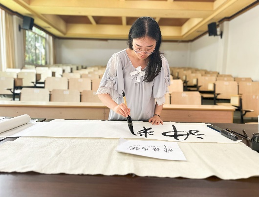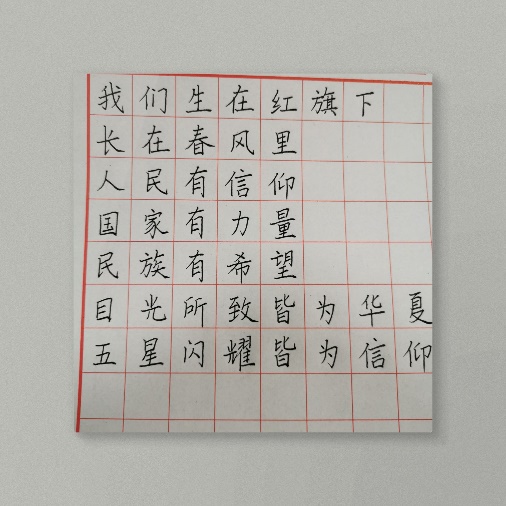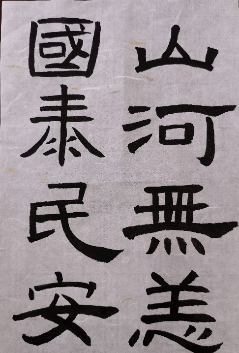 舞动的笔端流淌的不仅仅是有形之字,更是无言之诗,无形之舞,无色之画,无声之乐。横竖撇捺间,轻重疾徐中,自有一份宁静,一份从容,纸上的一字一句传递着中华优秀传统文化。