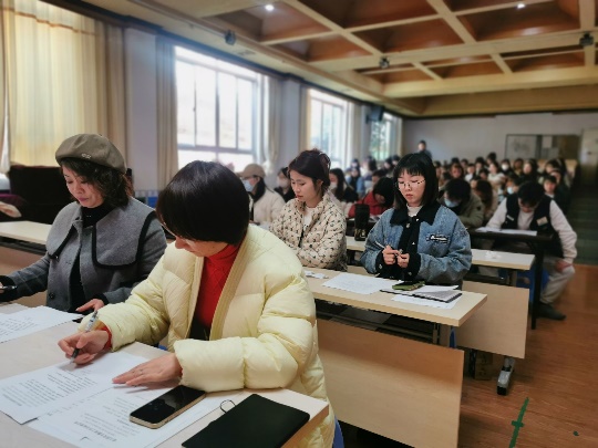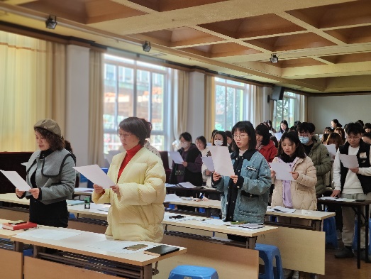 随后,德育主任钱凤梅老师领读“师德师风承诺书”,全体教师仪态端庄、精神饱满,字字铿锵,句句坚定, 拳拳初心。在庄严的宣读声中,表达了恪守教师师德、严守职业底线、坚持廉洁从教的决心,牢记誓言,履行承诺,做一名有高度责任感、有担当的教师。
