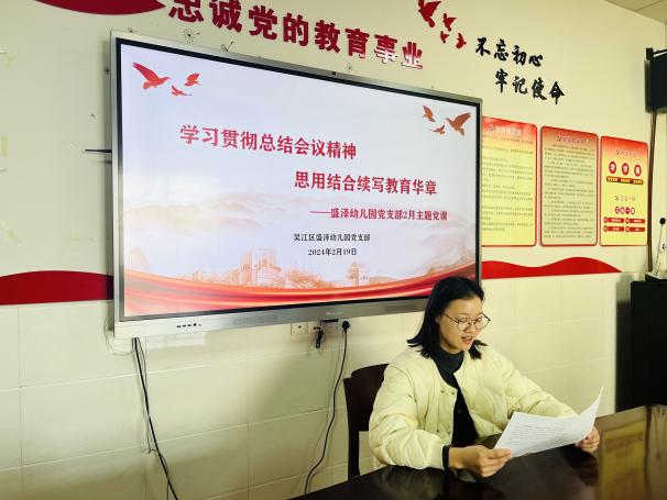 学习贯彻总结会议精神 思用结合续写教育华章——盛泽幼儿园党支部2月份主题党日活动
