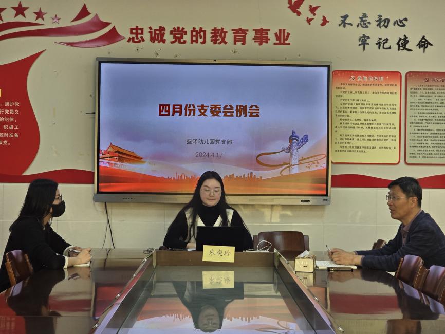 2024年4月17日,盛泽幼儿园党支部在辰星楼会议室召开4月份支委会例会。此次会议共有两项议程:一是学习《中国共产党纪律处分条例》;二是确定本月党课主题及内容。