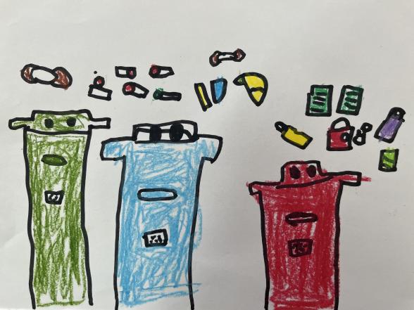 绿色桶 可回收物:塑料瓶子、玻璃罐子、金属、牛奶盒等等。