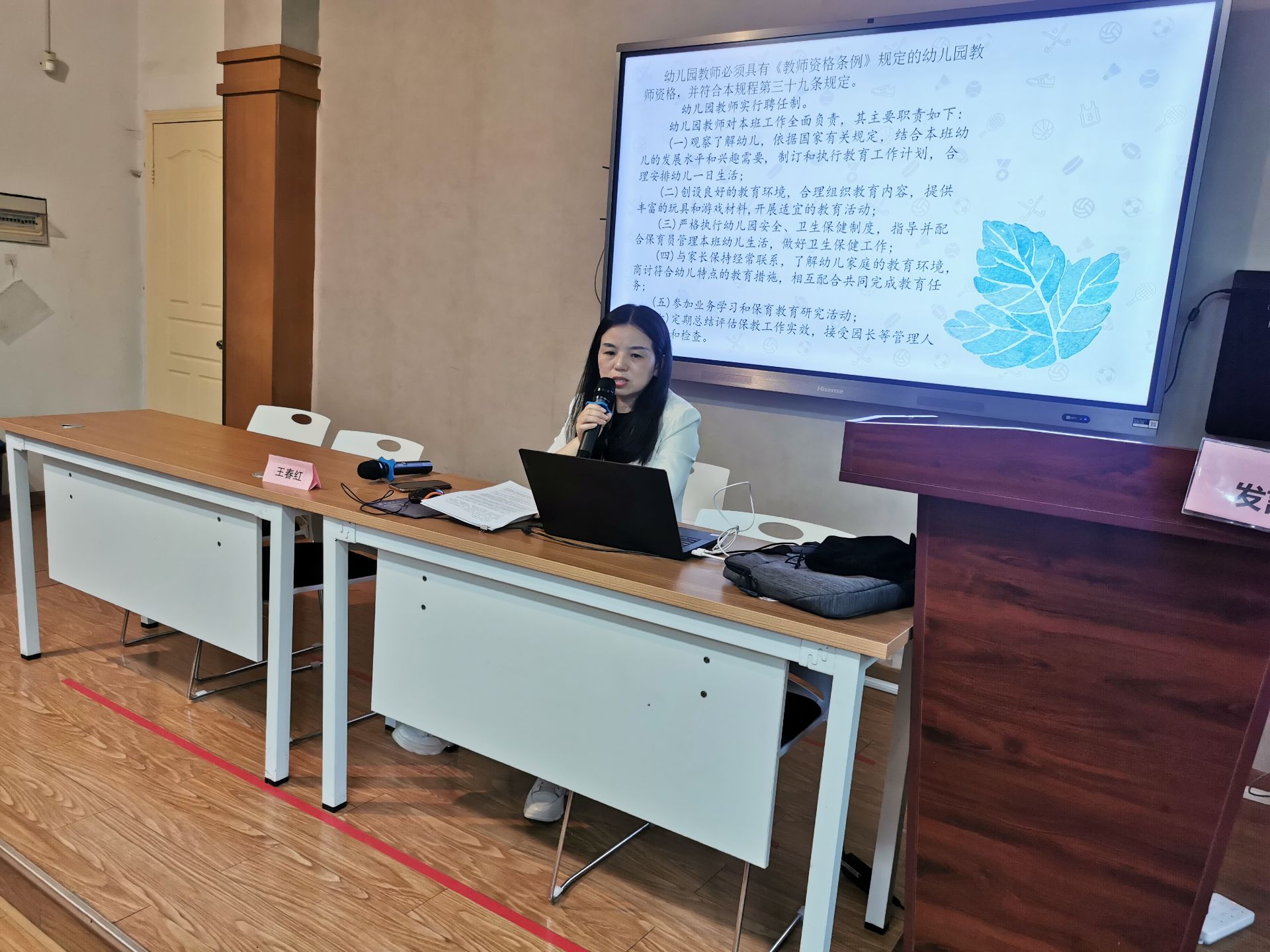 重视教育古今中外历来所为,“育才造土,为国之本”强调培养和造就人才是国家的根本。既然国家兴之于教育,教育兴之于教师。基于此,首先王园长对全体教师进行了《中华人民共和国教师资格条例》培训。一是为了提高教师素质,加强教师队伍建设,依据《中华人民共和国教师法》制定的。此条例涵盖内容共七章23条。从总则,教师资格分类与适用,条件,考试,认定,罚则,附则等方面详细阐述。