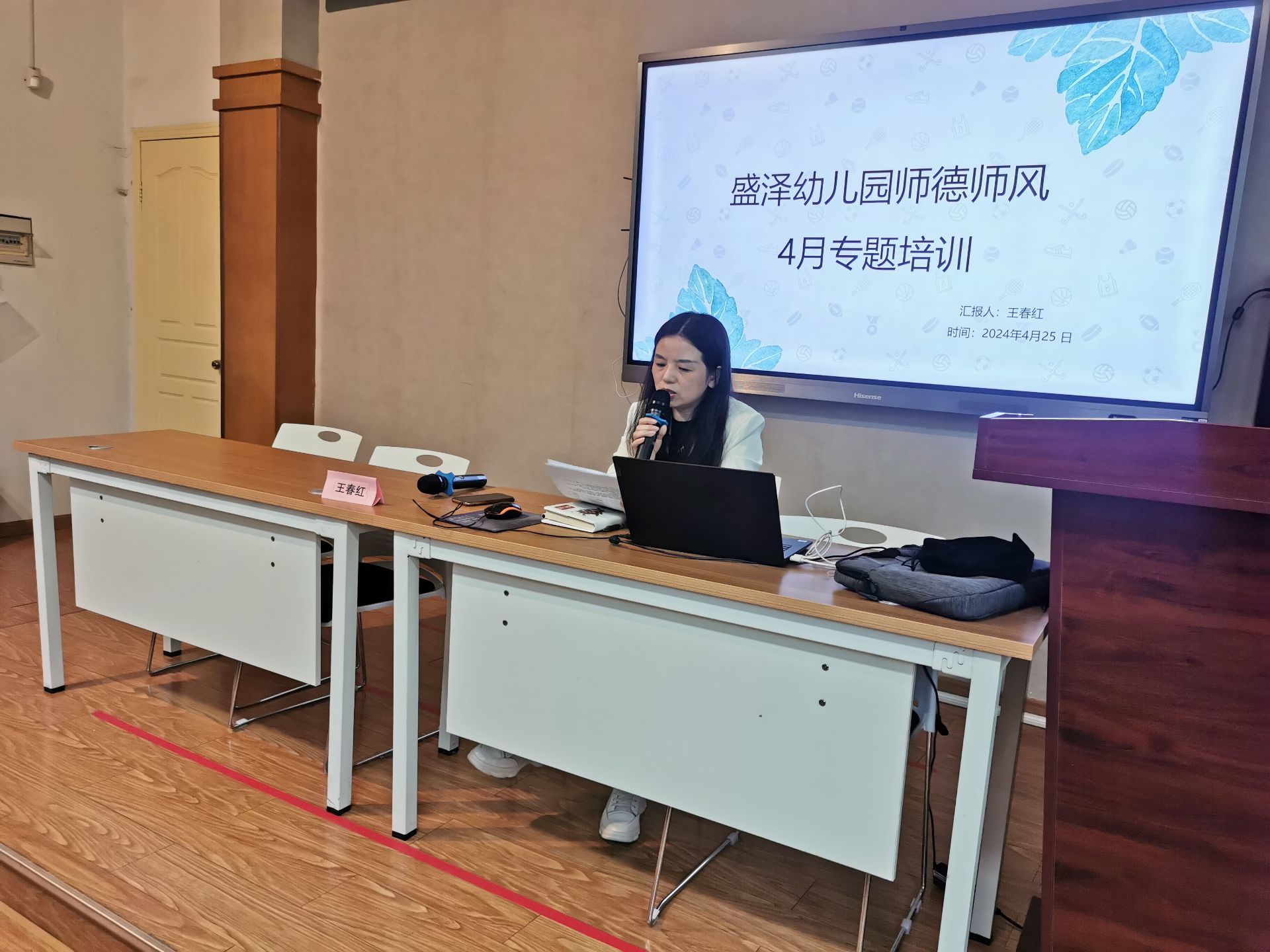 为全面落实立德树人根本任务,进一步加强学校师德师风建设工作,规范教师职业行为,2024年4月25日,吴江区盛泽幼儿园召4月师德师风专题培训会议。本次会议主讲人为园长王春红,全体盛泽幼儿园教师参与了此次培训。