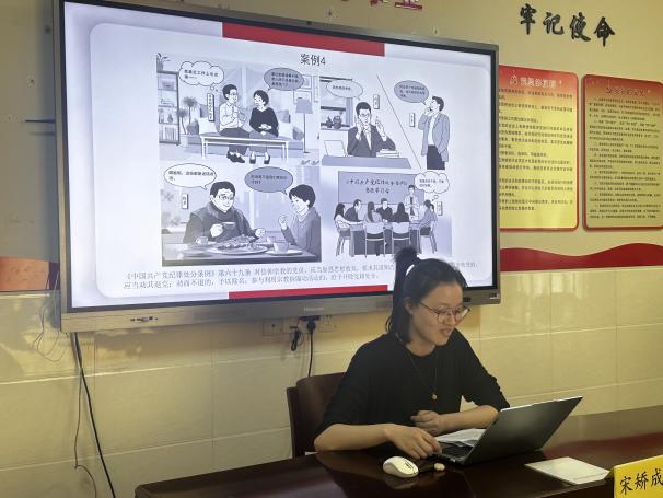 会上,宋委员从“《条例》——总则”、“《条例》——分则”、“知行合一”三大方面,结合若干实际案例,引导党支部成员共同学习《中国共产党纪律处分条例》的相关内容。她强调,党员干部要熟知条例的条款内容,形成对于纪律规定的清晰认知,在想问题、作决策、办事情时,自觉按党纪的具体要求办,只有自觉把党纪当成“紧箍咒”,时刻明晰公与私、是与非、情与纪的“警戒线”,才能始终稳得住心神、管得住行为、守得住清白,我们不仅要学习党纪党规的字面意义,更要深化对纪律精神的理解,用纪律规定来校正自己的思想和行动,要以党性原则“钢筋”,筑牢遵守纪律的思想“地基”,时刻提醒自己明纪律、不逾矩,始终做到思想锤炼从严、工作标准从严、作风养成从严、自我约束从严,使铁的纪律成为日常习惯和自觉遵循。