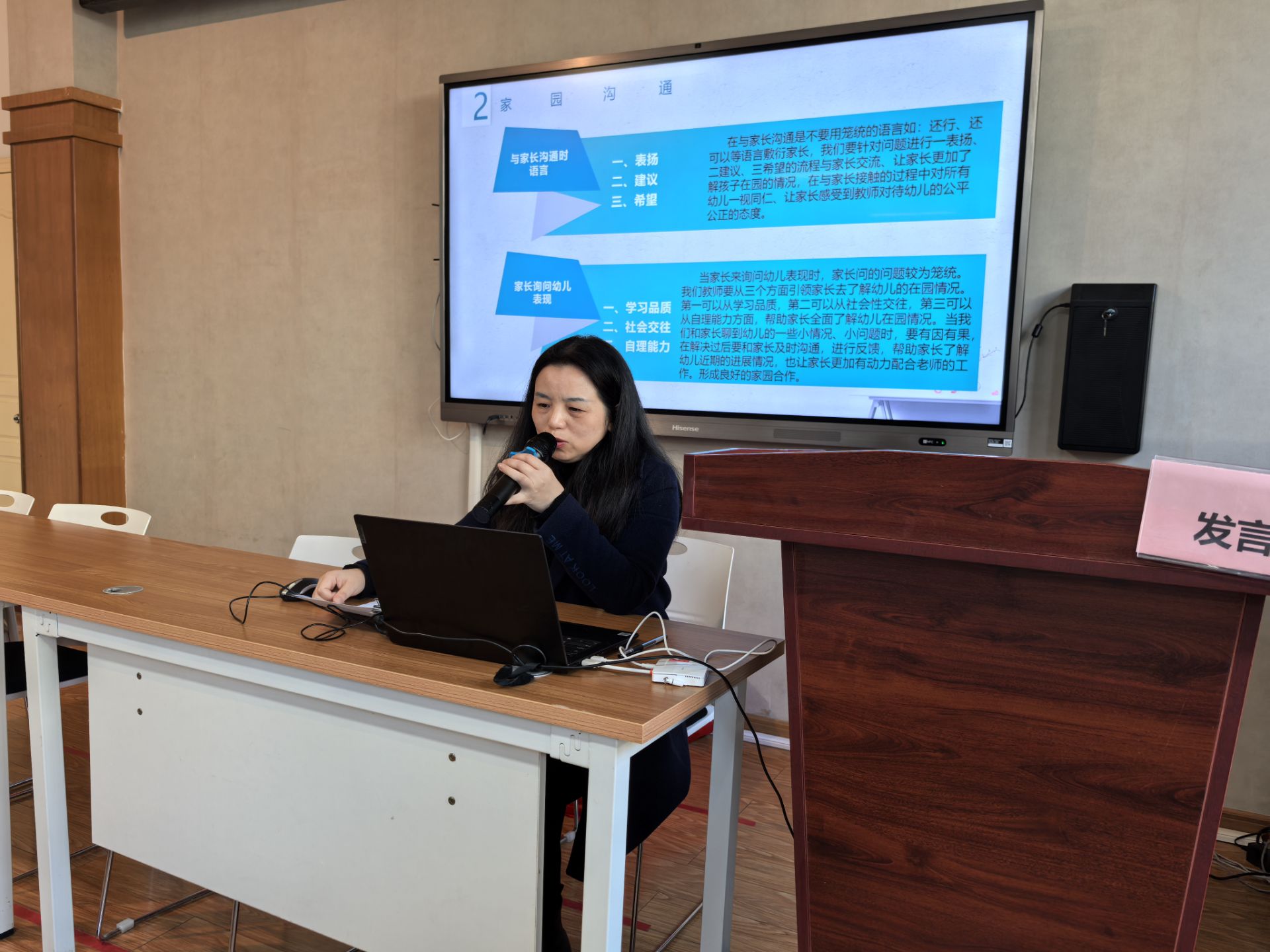 活动伊始,王春红园长从师德的概念和内涵、家园共育中如何和家长沟通以及如何在家园共育工作中努力达成师德“高线”三方面进行分享。王园长强调:在与家长沟通是不要用笼统的语言如:还行、还可以等语言敷衍家长,要针对问题进行一表扬、二建议、三希望的流程与家长交流、让家长更加了解孩子在园的情况,在与家长接触的过程中对所有幼儿一视同仁、让家长感受到教师对待幼儿的公平公正的态度。