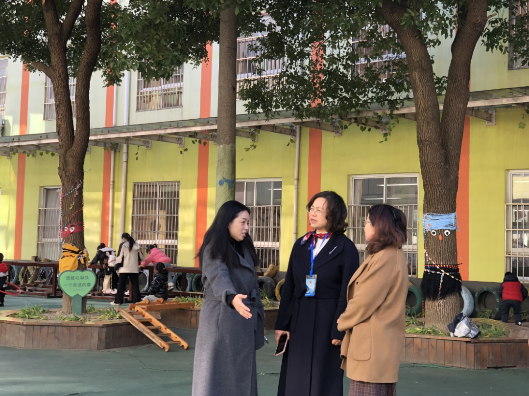 在盛泽幼儿园行政人员的陪同下,两位督学实地查看了幼儿园班级室内外环境创设,了解常态化教育教学开展情况、户外活动开展情况、户外活动设施设备等。