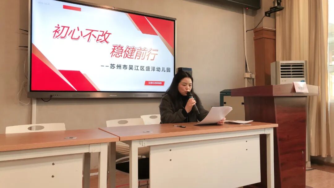 根据文件要求,在责任督学的监督下,盛泽幼儿园开展了2024年度领导述职和民主测评会议,全体教师参加了本次会议。王春红园长紧紧围绕“德、能、勤、绩、廉”等方面以“初心不改,稳健前行”为题对幼儿园各项工作进行了全面、细致地汇报。