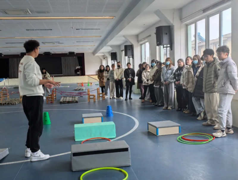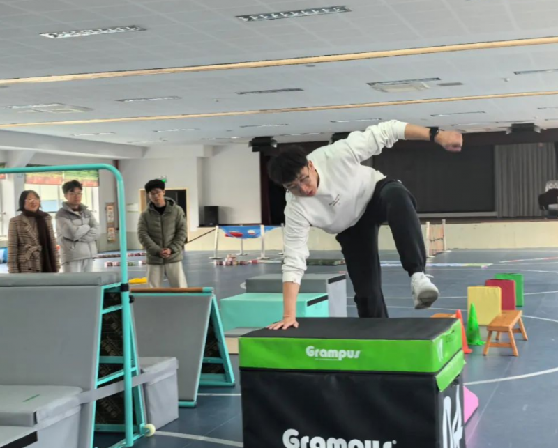 在跑酷运动培训环节,李教练为教师们带来全新理念。他首先与老师们研讨了如何将跳箱、平衡木、障碍物等器材进行多样化的组合摆放,为不同年龄段幼儿设计专属跑酷路线。在培训过程中,李教练详细讲解了跑酷运动的动作要领和安全注意事项,教师们分组模拟幼儿跑酷过程,亲身体验并不断优化路线设计,力求让跑酷运动安全又富有趣味性。