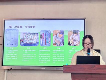 活动中,小6班蔡心奕老师分享了《一双鞋子的故事》,大7班沈小飞老师分享了《从无序到自主——幼儿过渡环节的探究之旅》。兴桥大班许彬君老师分享了《梳头那些小时儿》‘中3班王冬英老师分享了《“骑”迹小队》。从“生活保育”环节中幼儿穿衣、洗手、进餐等生活自理能力的细微表现,到“户外体锻”时幼儿奔跑、跳跃、攀爬等运动能力的发展变化,再到“过渡环节”里幼儿自主选择活动、有序排队、友好交流等行为习惯的养成,老师们将一个个鲜活的教育故事娓娓道来,仿佛带领大家走进了幼儿丰富多彩的游戏世界。案例分享结束后,副园长凌国青对本次活动进行了全面而深入的总结与梳理。她首先对老师们案例分享中的亮点给予了充分肯定,称赞老师们观察细致入微,能够敏锐地捕捉到幼儿在游戏中的每一个细微变化;分析深入透彻,能够从幼儿的行为表现中挖掘出背后的教育价值;引导策略有效,能够根据幼儿的发展需求和特点,采用恰当的方法引导幼儿学习和成长。同时,她也指出了案例分享中存在的不足之处,如部分案例的逻辑性有待加强、反思的深度不够等。