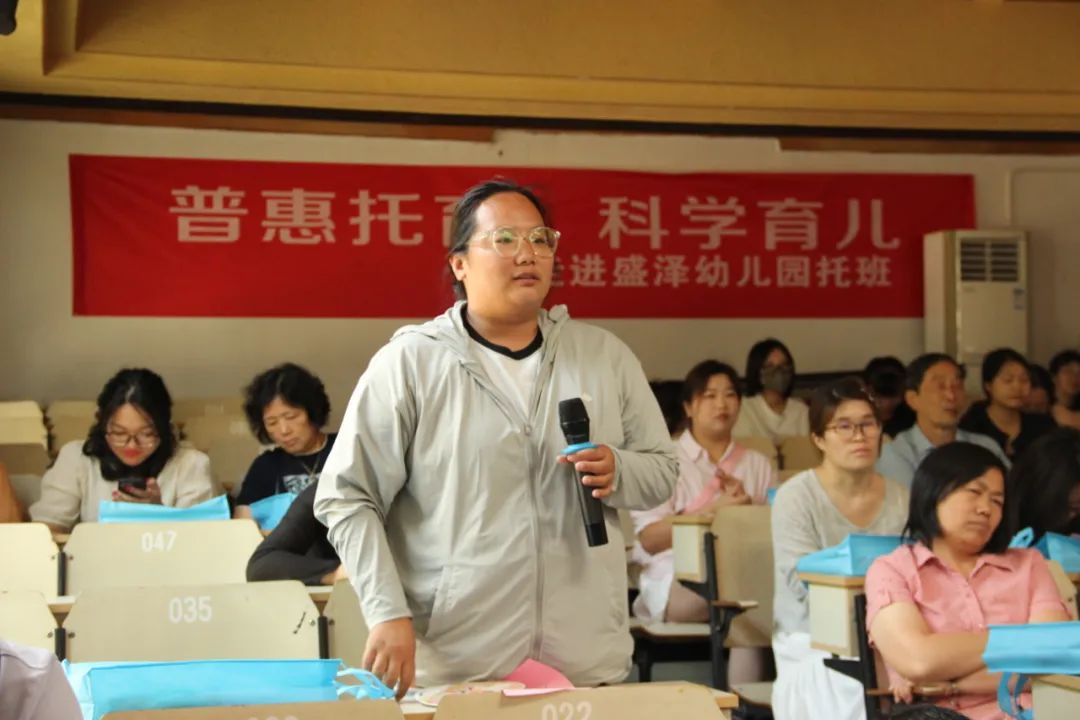 活动在盛泽幼儿园两个会场同步开展。在盛泽幼儿园多功能室,王建卫、顾岚两位育儿专家为托班和众多婴幼儿家长带来关于儿童教养核心经验、要领及婴幼儿体重管理专题讲座,深入解读0-3岁婴幼儿早期发展特点,帮助家长树立科学育儿理念。