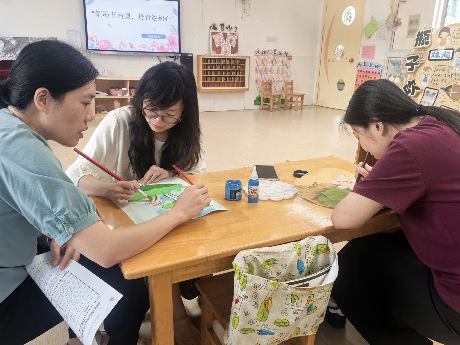 “笔墨书清廉,丹青绘初心”师德主题书画比赛。全园教师以笔为媒、以画传情,通过传统艺术形式诠释“清廉从教”与“爱国敬业”的深刻内涵,展现新时代幼教工作者的精神风貌。