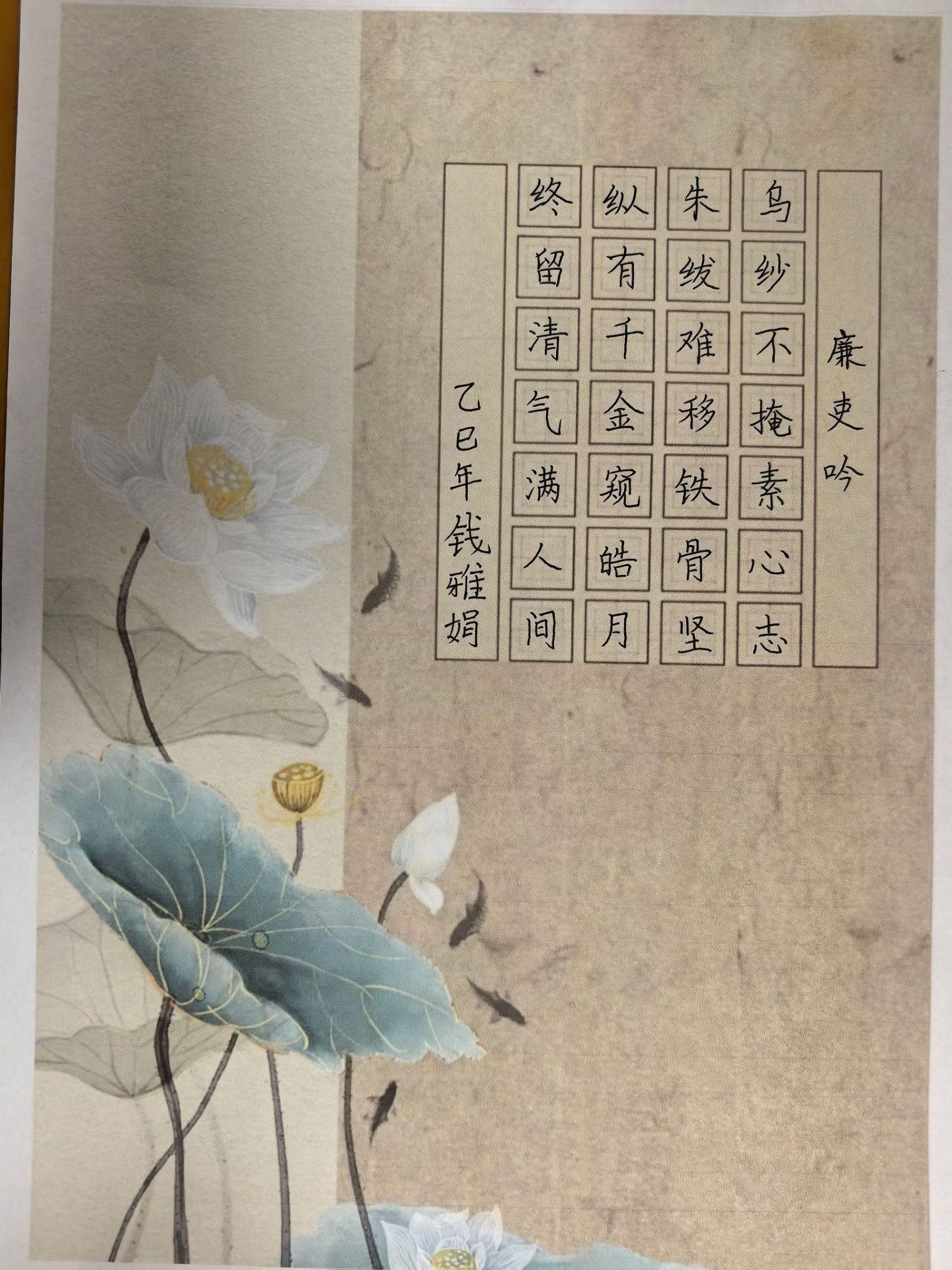 本次活动紧扣“清廉”与“爱国”两大主题,鼓励教师通过书画创作将抽象的师德要求转化为生动的艺术表达。书法类作品涵盖毛笔与硬笔两种形式;绘画类作品则通过国画、水彩等多元形式,以莲花、青松、长城等意象传递清廉品格与家国情怀。