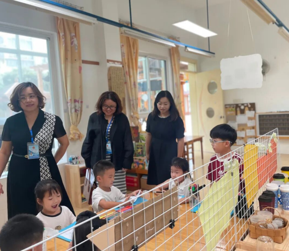 秋意渐浓,新学期伊始。为全面了解幼儿园新学期各项工作规范、有序开展的情况,2025年9月18日,吴江区责任督学吕淑萍、陈雪花两位园长莅临盛泽幼儿园,进行了2025年秋季学期常规工作的实地督导检查。本次督查围绕“作息时间执行情况”“课程计划执行情况”“校园安全工作”等内容,通过实地查看、听取汇报、查阅资料等方式,对盛幼工作进行了全面、细致地检阅与指在园领导的陪同下,两位督学首先实地观摩了各班级的活动组织。她们细致地查看了幼儿的一日活动流程,对盛幼科学合理地安排幼儿作息时间、最大限度地支持和满足幼儿通过直接感知、实际操作和亲身体验获取经验的需要给予了充分肯定。无论是生活环节还是学习活动,孩子们自主、有序、投入的状态,展现了园所日常管理的规范与高效。