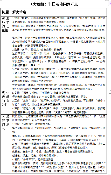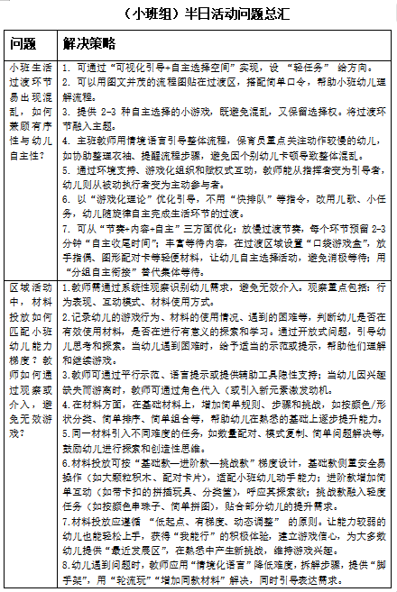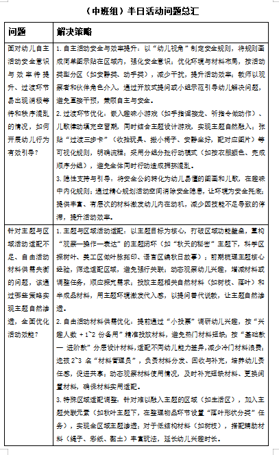 此次系列教研活动不仅是一次深刻的“问题诊断”与“策略共研”,更是一次生动的“理论联系实际”的专业修炼。它促使教师们跳出日常惯性,以更专业的视角审视半日活动的每一个环节,将《指南》的理念转化为可落地、可观察的教育行为。通过集体智慧的碰撞与共享,各年龄组均形成了具有本年龄段特点的问题汇总与策略清单,为后续持续性的教学改进指明了清晰路径。