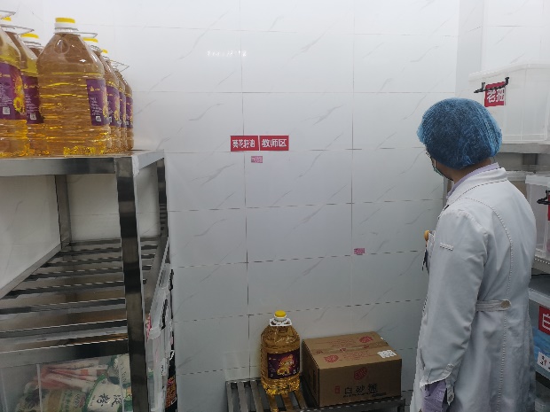 对幼儿园食堂管理及食品安全进行详细的检查,实地查看食堂原料采购记录、食品出入库记录、食堂员工操作等情况;同时,对食堂食品留样进行了全面指导。