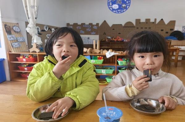 伴着暖冬的和煦阳光,家长们怀揣着期待与喜悦如约而至。在孩子们亲手制作的创意邀请卡的指引下,家长们有序签到入园,沉浸式开启了与孩子同频的在园时光。区域活动中,孩子们专注搭建积木、创意绘画、沉浸阅读……早操时间,孩子们精神抖擞、动作整齐……温馨的点心时光里,孩子们自主取餐、文明进餐……趣味课堂上,孩子们积极举手、大胆表达、乐于探索……亲子美食制作环节中,大手牵小手共同揉面、包馅……萌娃市集上,孩子们化身小摊主热情吆喝、分享美食……一个个丰富多彩的活动环节,不仅全面展示了孩子们在园的成长与发展,更让家长们在亲身体验中,感受到了幼儿园教育教学的用心与温度。